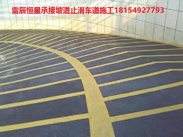 1. 防滑車道又稱無(wú)震動(dòng)止滑車道、停車場(chǎng)防滑坡道、暴砂防滑地面、止滑型坡道、停車場(chǎng)防滑地坪漆等。專門(mén)用于各類停車場(chǎng)上、下坡道場(chǎng)所。防滑車道材料一種雙組份、反應(yīng)硬化性材料,主要成分由是改性樹(shù)脂和C料組成,含有多 角性硬度極高的骨材,利用巨大比表面積,達(dá)到防滑效果
