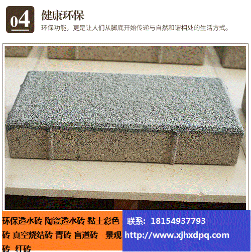 透水磚是為解決城市地表硬化,營(yíng)造高質(zhì)量的自然生活環(huán)境,維護(hù)城市生態(tài)平衡而隆重誕生的世紀(jì)環(huán)保建材新產(chǎn)品。本產(chǎn)品具有保持地面的透水性、保濕性,防滑、高強(qiáng)度、抗寒、耐風(fēng)化、降噪、吸 音等特點(diǎn)。它采用礦渣廢料、廢陶瓷為原料,經(jīng)兩次成型,高溫?zé)桑蔷G色環(huán)保產(chǎn)品。那么透水磚有哪些特性,使得它在市場(chǎng)上如此受關(guān)注呢:
